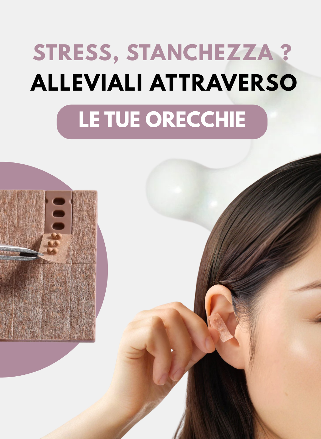 Sì. Stimolando specifici punti di acupressione dell’orecchio collegati a mandibola, collo e muscoli facciali, il Kit Punti di Serenità aiuta a rilasciare le tensioni accumulate, migliorare la circolazione e favorire il drenaggio linfatico.