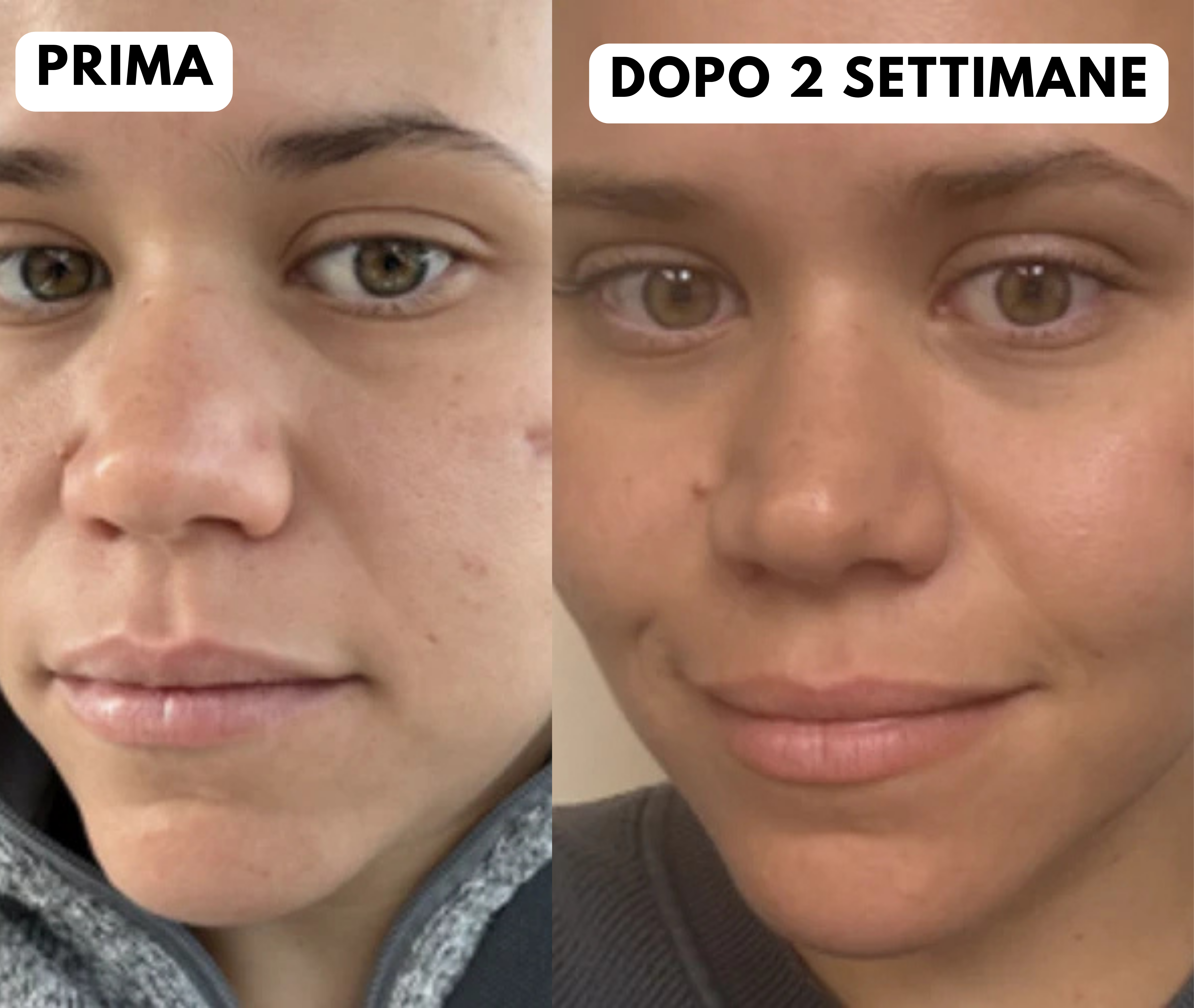 La mia carnagione è molto più luminosa e l’aspetto della pelle è più sano. Le cicatrici lasciate dalle imperfezioni si sono attenuate!