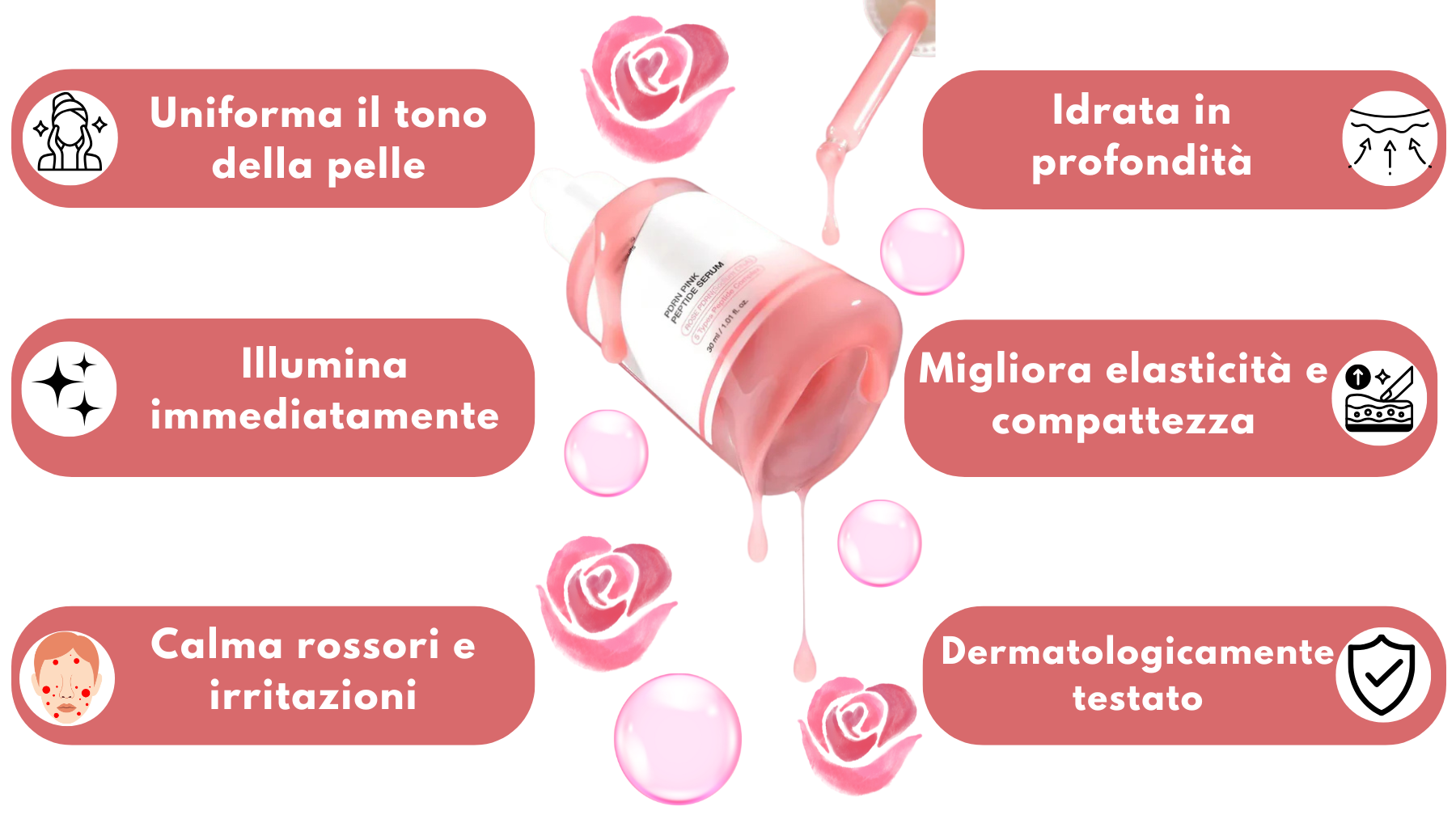 Sì, certo! Il Siero Pink Glow si integra perfettamente nella tua routine quotidiana. Applica sempre il siero prima della crema o della maschera per potenziare l’assorbimento degli attivi.